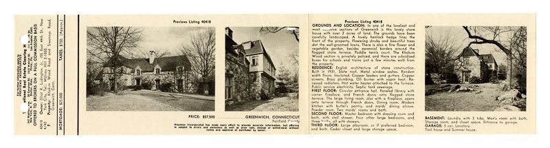 Ad with two images of the house and information on its location, grounds, rooms, and price.