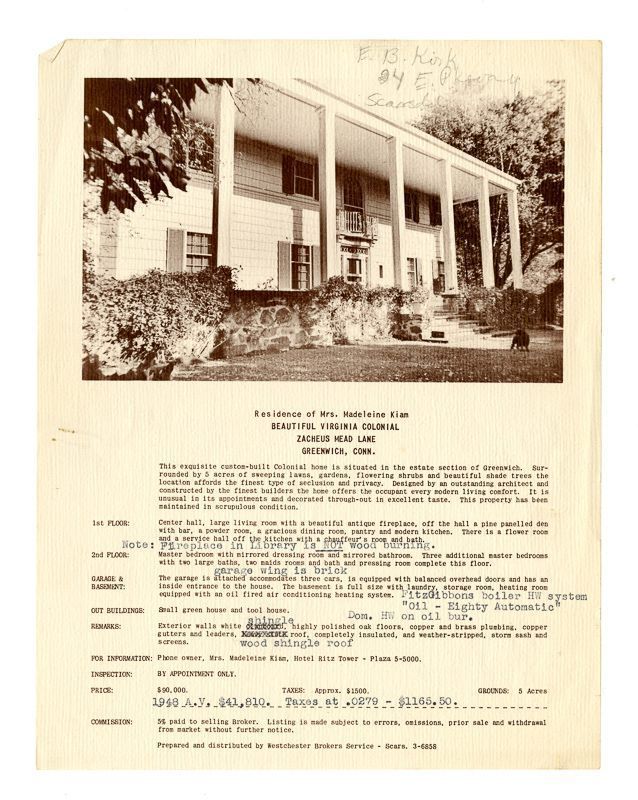Ad with an image of the house and information on its location, grounds, rooms, amenities, and price.