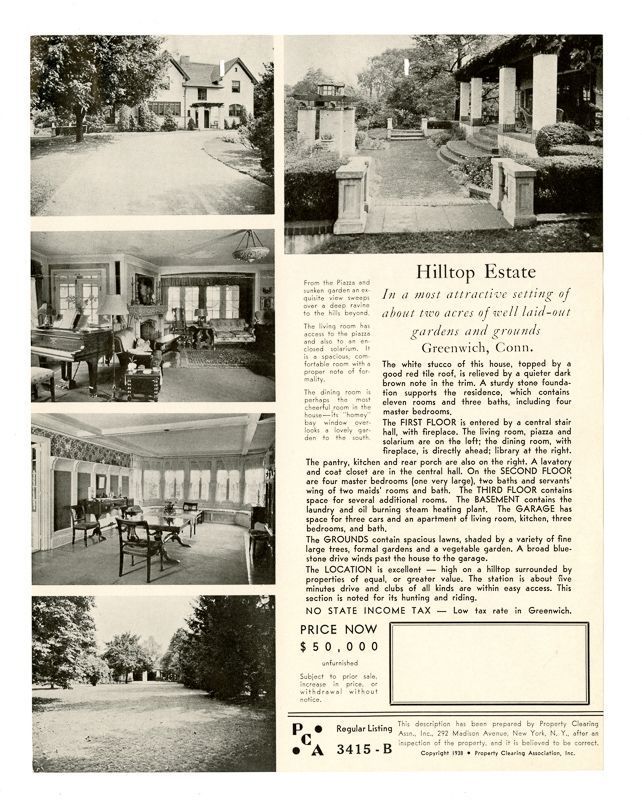 Ad with images of the house, its lawn, and interiors. Ad also includes information about the house's location, rooms, and price.Collection