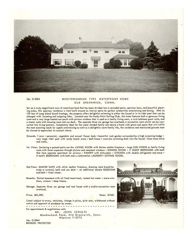 Ad with images of the house and information on its location, grounds, rooms, and price.