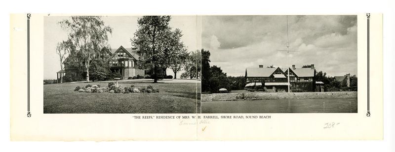 Ad with images of the house viewed from its lawn and from the water.