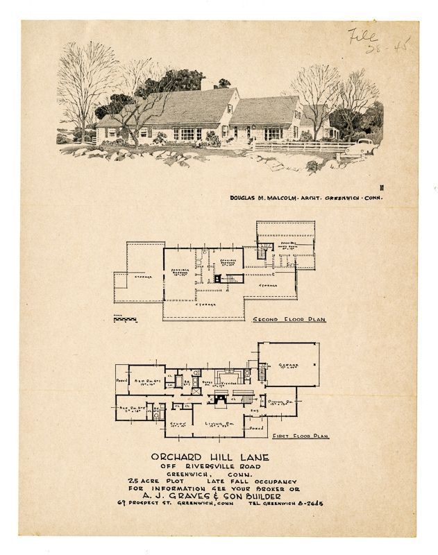 Ad with a drawing of the house and its floor plans.