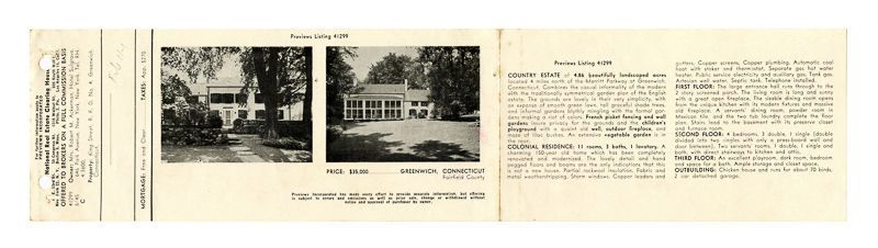 Ad with images of the front and rear of the house. Ad also has information on the house's location, grounds, rooms, and price.Collection