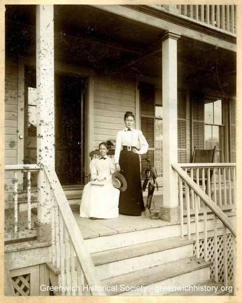 Josephine Holley (seated) with her daughter, Constant Holley MacRae on the lower porch of Bush-Holley House.Collection