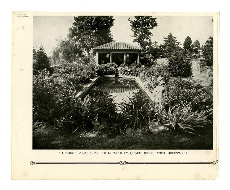 Ad with an image of part of the estate's gardens with a water feature in the center.