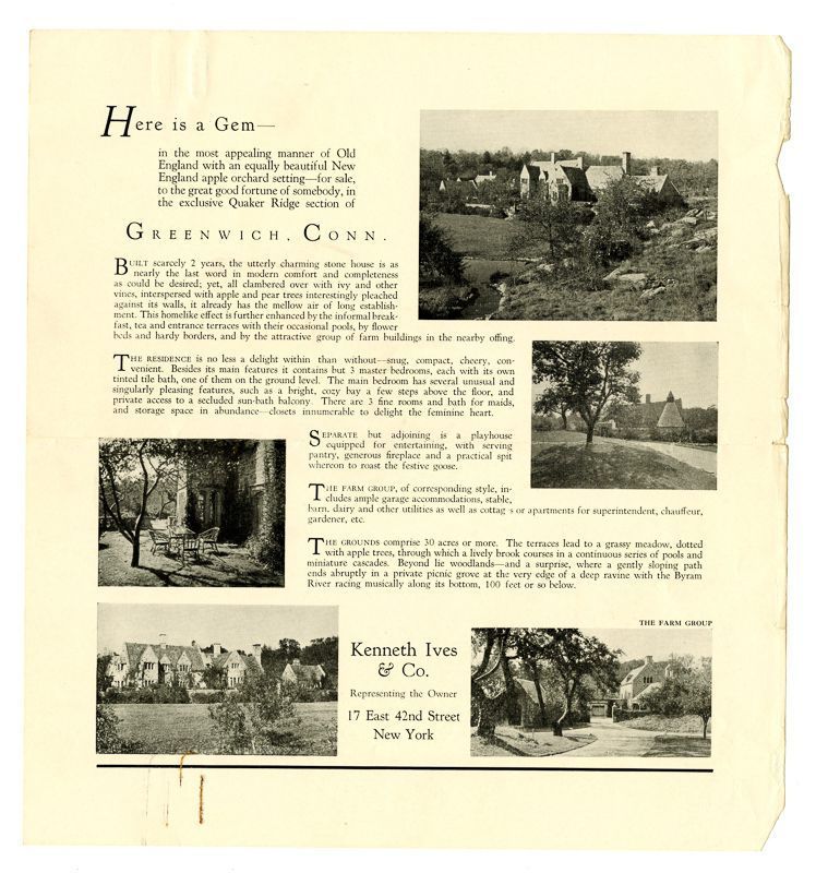 Ad with images of the house and its grounds. Ad also includes information on the house's grounds, rooms, and outbuildings.Collection