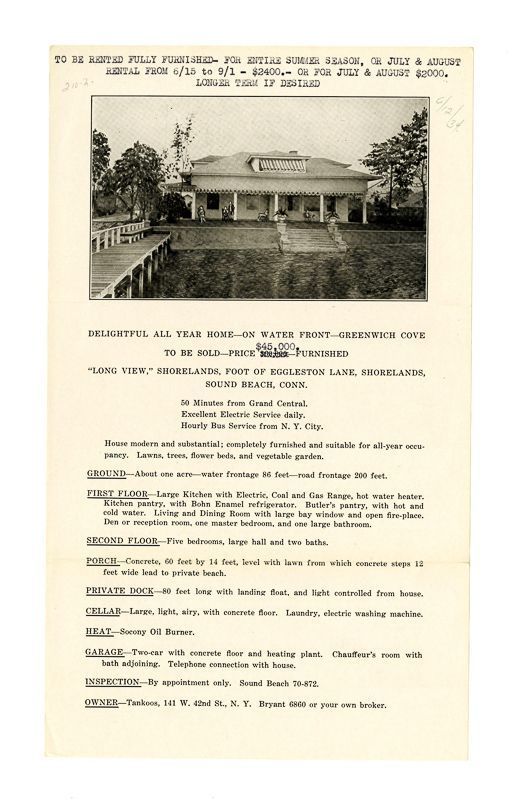 Ad for renting the house during the summer with information about the house's location, rooms. amenities, and price.