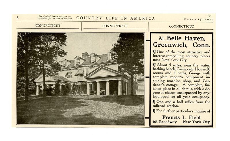 Ad with a view of the house from its lawn and information about the location and interiors.Collection