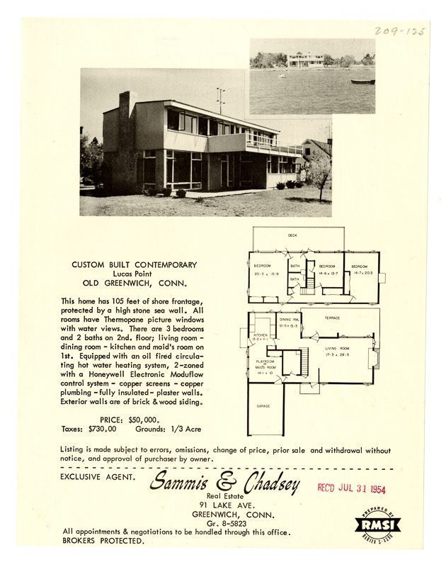 Ad with images of the house and its floor plans. Ad also includes information on the house's architecture, rooms, and price.Collection