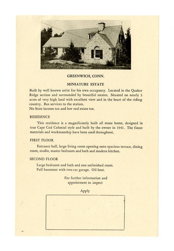 Ad with an image of the house and information on its location, architecture, and rooms.