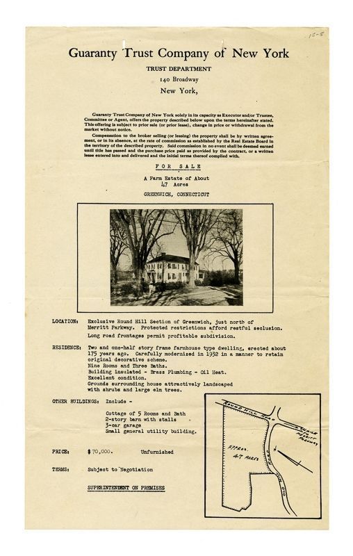 Ad with an image of the house and a map of its location. Ad also has information on the house's location, rooms, outbuildings, and price.Collection