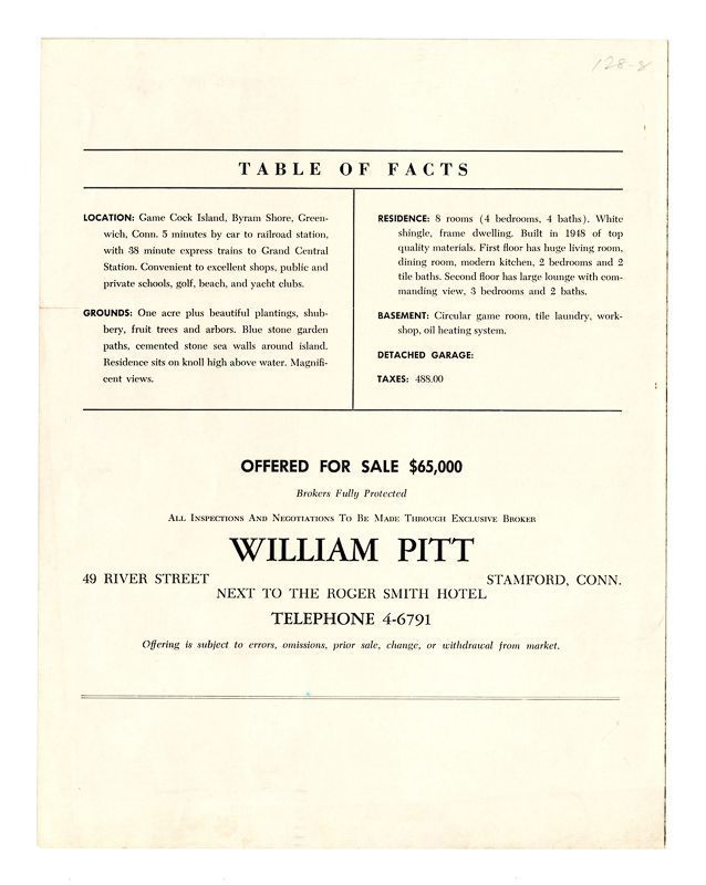 Game Cock Island Byram Shore Road Booklet Back