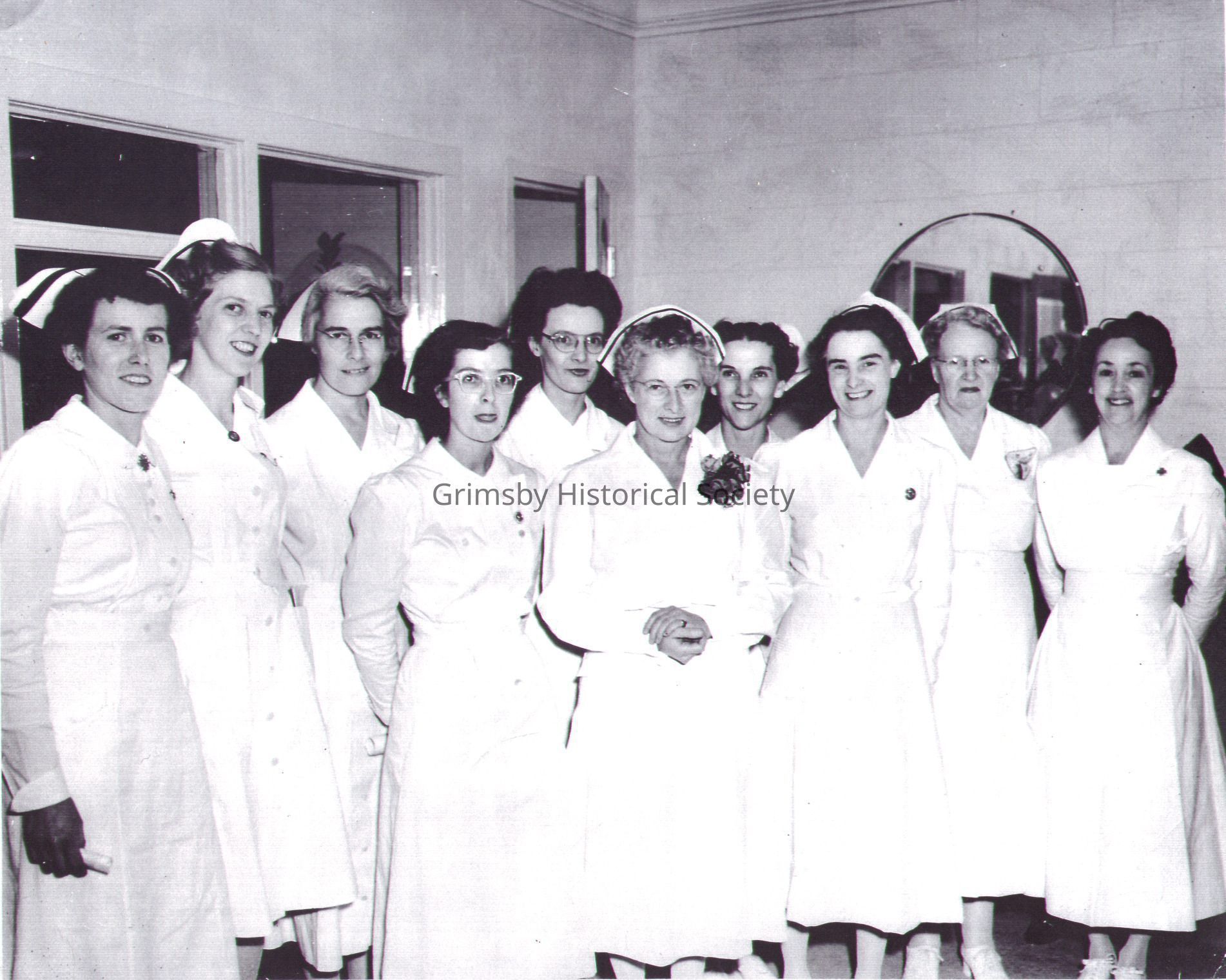 Helen Douglas MacRobbie was the first administrator of West Lincoln Memorial Hospital. She started out as a young nurse in Hamilton, and after a few years of nursing, was appointed to set up and administer the Red Cross Blood Donor’s service across Hamilton and surrounding areas, including Grimsby. Meanwhile a new hospital was proposed for the area. Charles Eames generously donated the clubhouse of his Deer Park Golf Club on Park Road South for that purpose. After a concerted effort at fundraising across the communities of Grimsby, Smithville and Beamsville, the clubhouse was renovated and became the first hospital in Grimsby.
