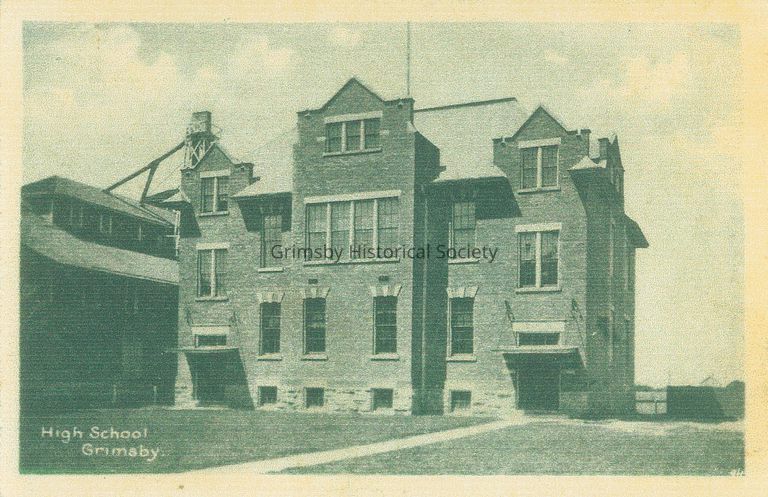 The Grimsby High school built 1910; in the background, left ,is the Grimsby Cooling Plant.