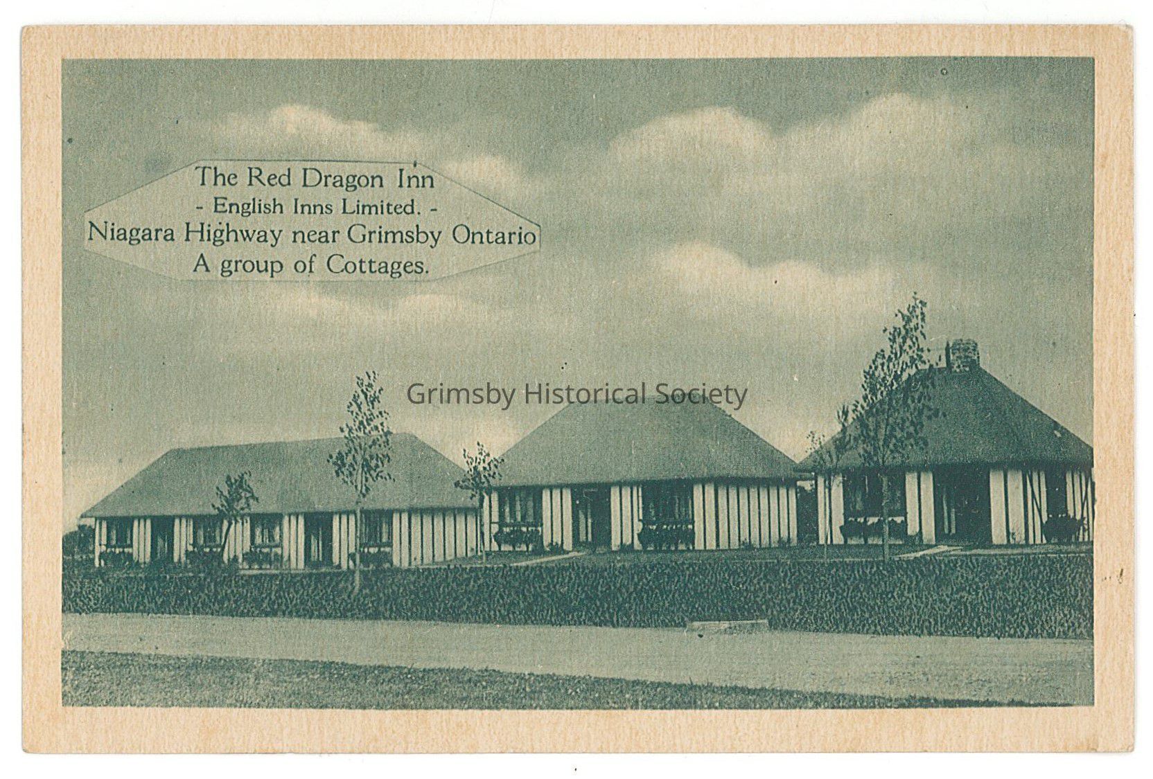 The Red Dragon Inn was built by the English Inns Limited Company, which was established by Burlington businessmen in 1929. They set up three thatched-style inns around Ontario. There was the Pig and Whistle in Burlington, the Black Horse near Niagara Falls and the Red Dragon in Grimsby. Despite their popularity, the Inns did not survive the Great Depression, all three buildings were sold off.