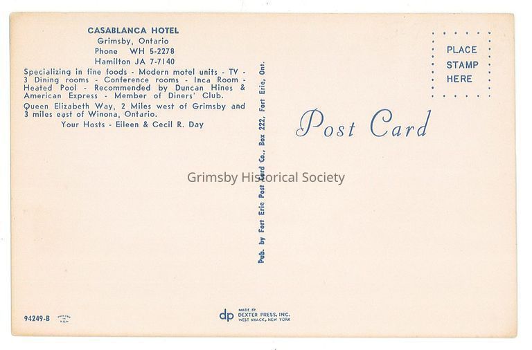 Cecil Day, who had owned several previous successful restaurants, bought El Rancho Casablanca. He installed modern motel units and an outdoor pool to create a resort atmosphere. When Ofield Road became “Casablanca Boulevard”, Day shortened El Rancho Casablanca to the “Casablanca”.