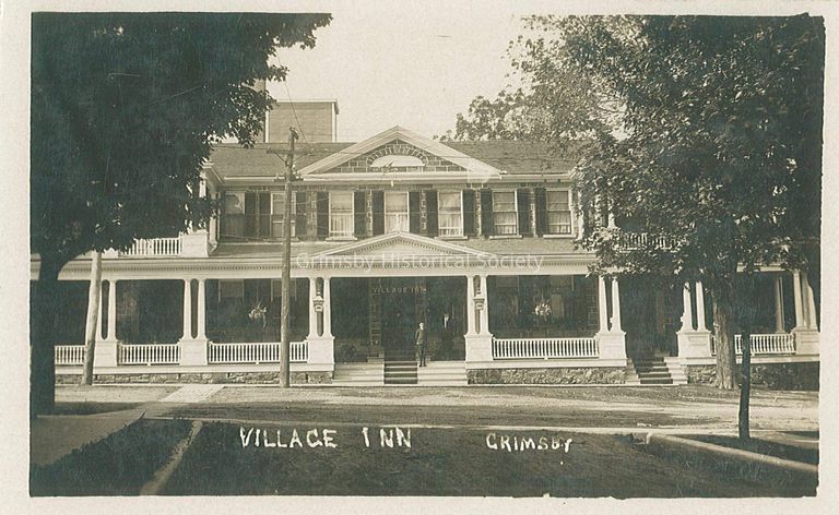 The Dolmage property was purchased by John Hewitt in 1906. John and his brother Simeon added a large extension along Mountain Street, building it out of the same local stone used to construct the original part of the building. The addition contained kitchens and the Oak Room, a finely appointed dining room. The store in the middle became the lobby and the upstairs was converted into guest rooms. The Village Inn was a popular place for dining and dancing for locals and travellers. The Village Inn was demolished in 1973.