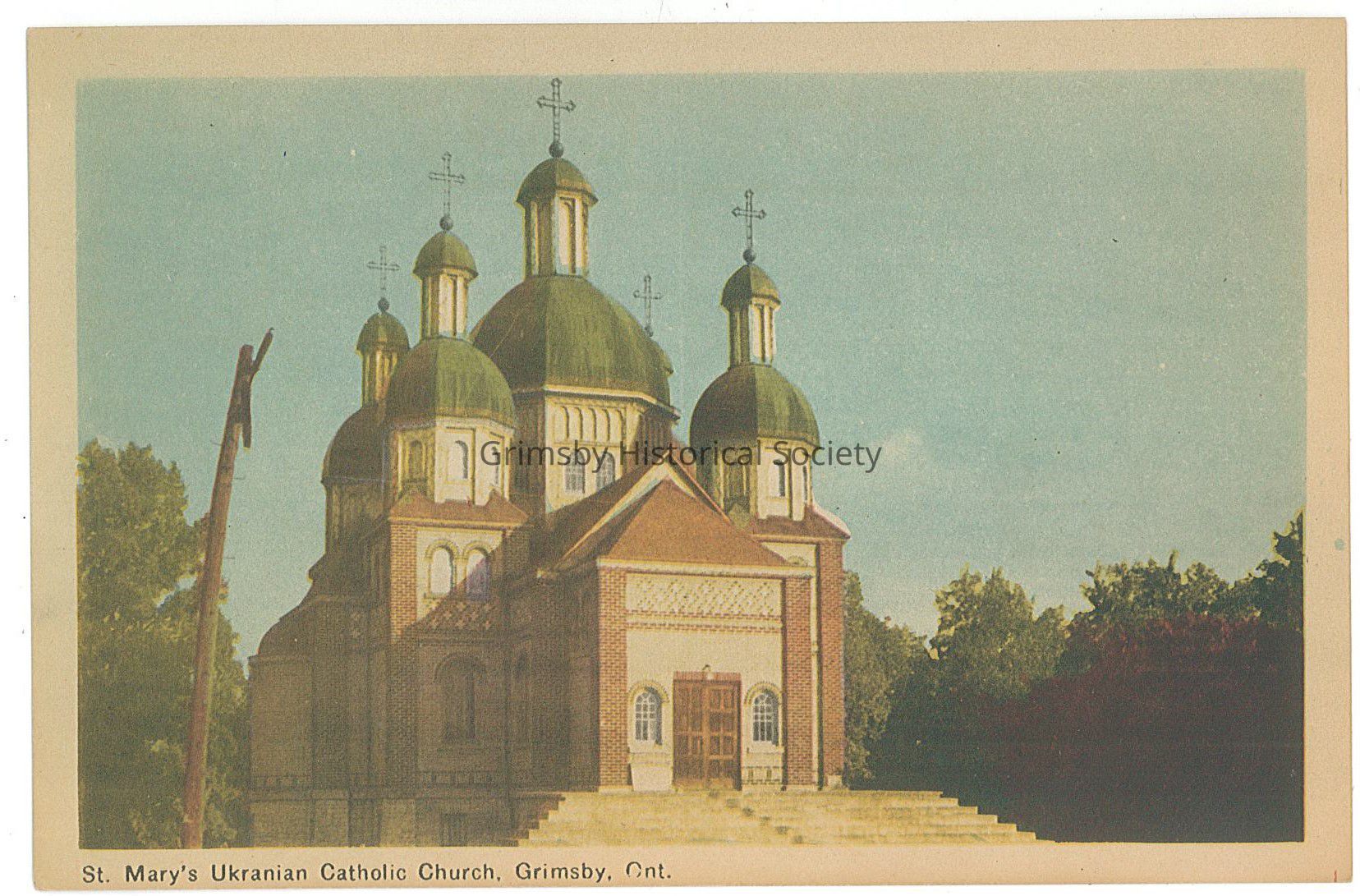 Ukrainian families began immigrating to Grimsby in 1929. The Catholic Ukrainians would attend St. Joseph’s Church, but many of them did not understand English or Latin. With the generous land donation from Mr. Fred and John Wisnoski in 1930, a new Ukrainian Catholic Church was in it planning stages. This new church would allow many of the Ukrainian speaking residents of Grimsby the ability to fully understand church services. Construction began in 1935 and finished six years later in 1941. Later on, a parish hall was added.