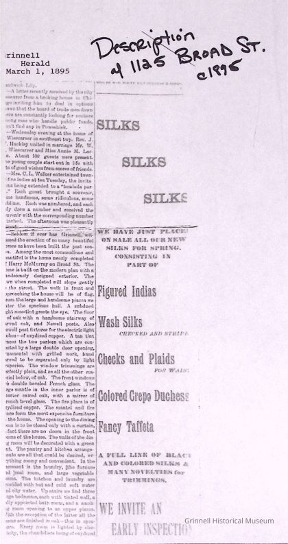 Box #1: The collection contains the Laymiller inventory of Grinnell houses; documentation from historic houses tours; articles on demolition of houses and house moving; downtown building facades and articles on particular houses.