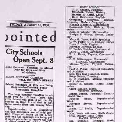 Newspaper clippings, documents from the Grinnell Public Schools. The collection consists of four boxes.