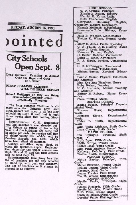 Grinnell Public Schools -- 1930-1931Entry/Object ID