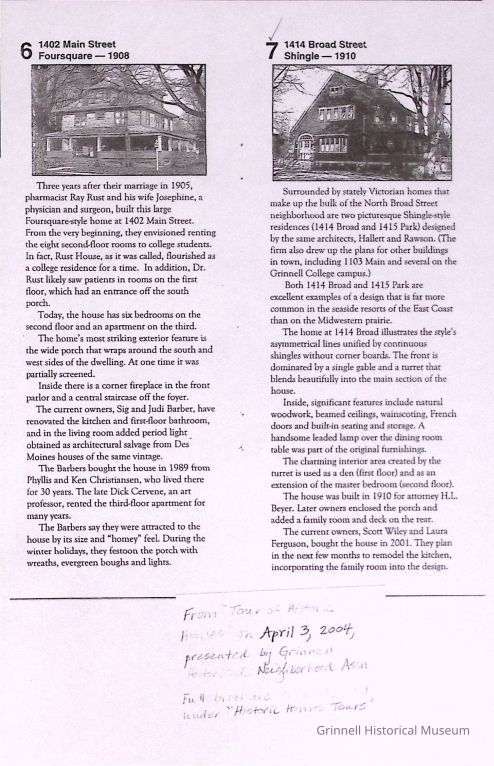 Box #1: The collection contains the Laymiller inventory of Grinnell houses; documentation from historic houses tours; articles on demolition of houses and house moving; downtown building facades and articles on particular houses.