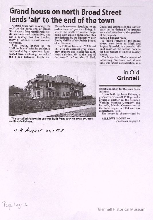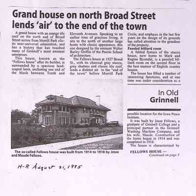 Box #1: The collection contains the Laymiller inventory of Grinnell houses; documentation from historic houses tours; articles on demolition of houses and house moving; downtown building facades and articles on particular houses.