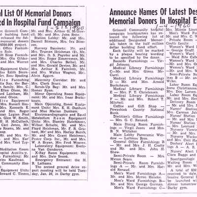 The collection contains articles on: Grinnell Herald-Register Special Edition on the Grinnell Community Hospital; the Poweshiek County Mental Health Center; the Hospital's 10th anniversary celebration; the Hospital Auxiliary articles 1968-1975; and the Grinnell Regional Medical Center.