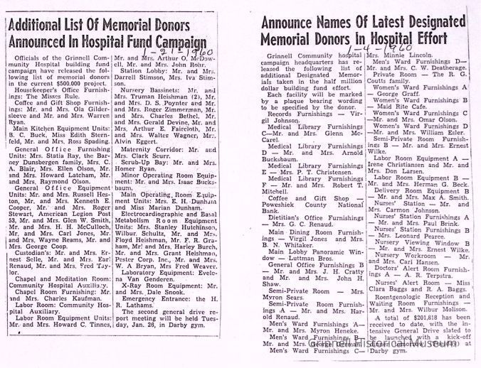 Grinnell Community Hospital, 1960-1967Entry/Object ID