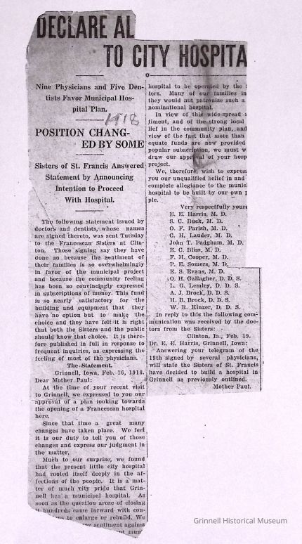 This is part of the Hospitals of Grinnell Collection. It is located in Box #1 of the collection. The collection consists of two boxes.