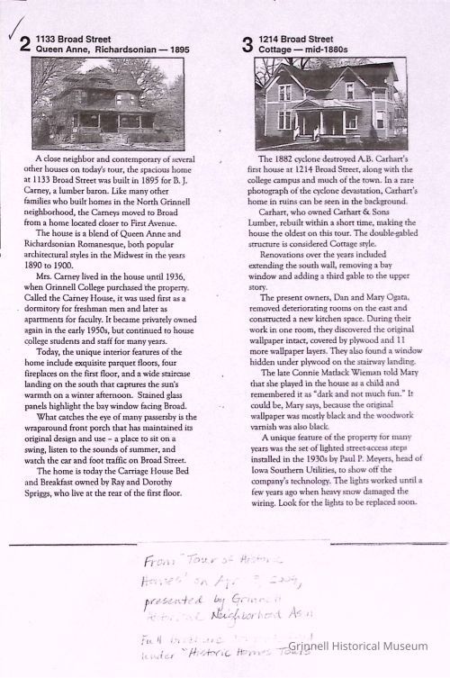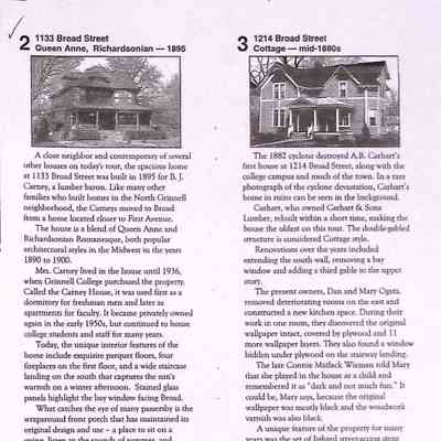 Box #1: The collection contains the Laymiller inventory of Grinnell houses; documentation from historic houses tours; articles on demolition of houses and house moving; downtown building facades and articles on particular houses.