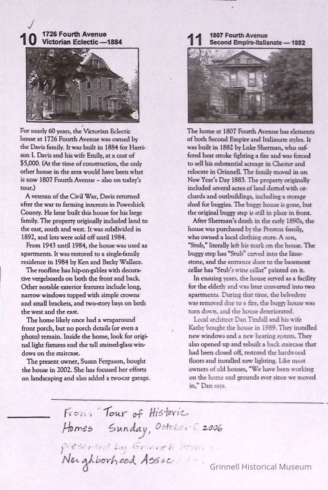 Box #1: The collection contains the Laymiller inventory of Grinnell houses; documentation from historic houses tours; articles on demolition of houses and house moving; downtown building facades and articles on particular houses.