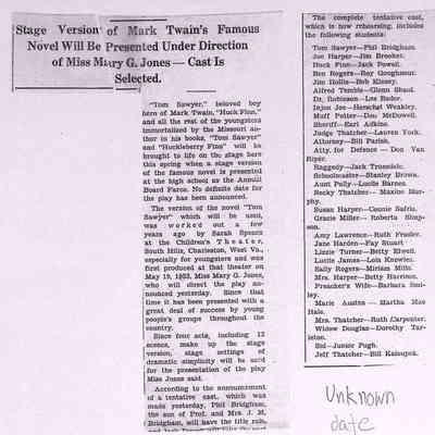 Box #3: Newspaper clippings, sports reviews, brochures, class programs, Newburg elementary school brochure, and class pictures.