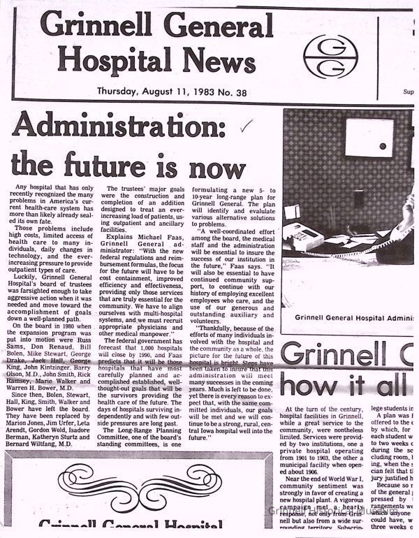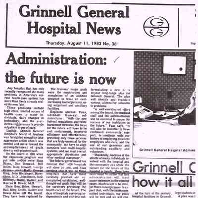 Grinnell General Hospital. 11 August 1983.Entry/Object ID