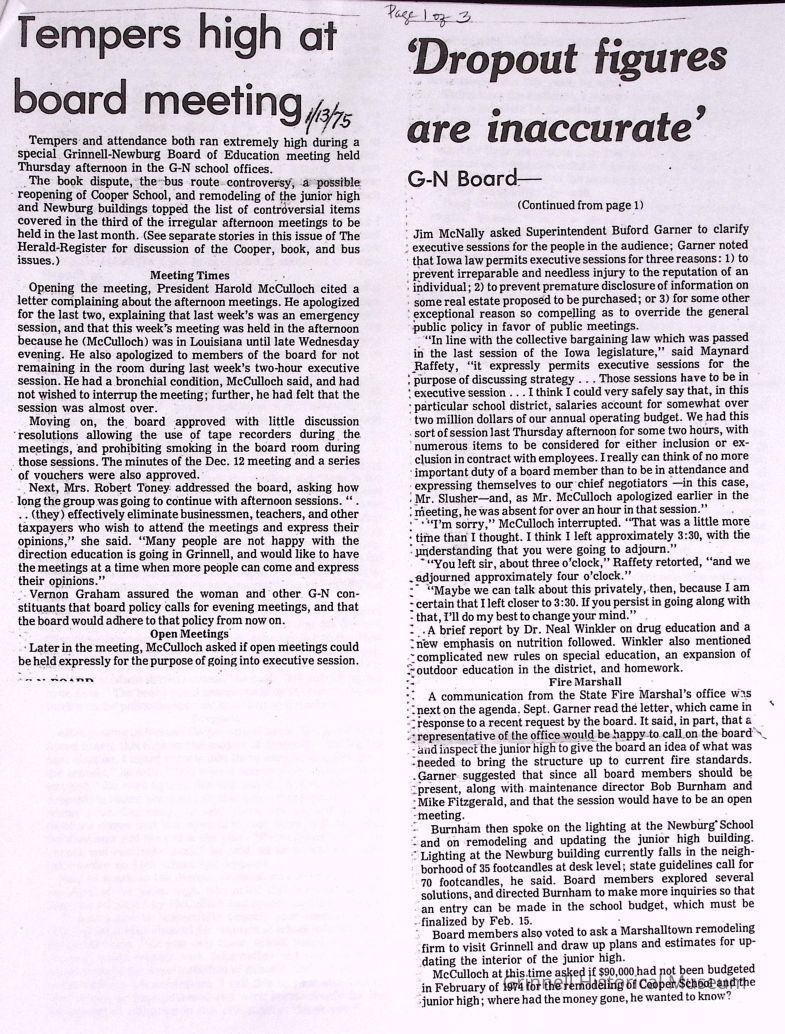 Newspaper clippings, documents from the Grinnell Public Schools. The collection consists of four boxes.