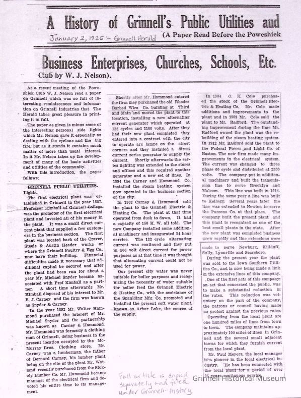 Collection Type: This collection traces the history and development of services provided by the city government of Grinnell.