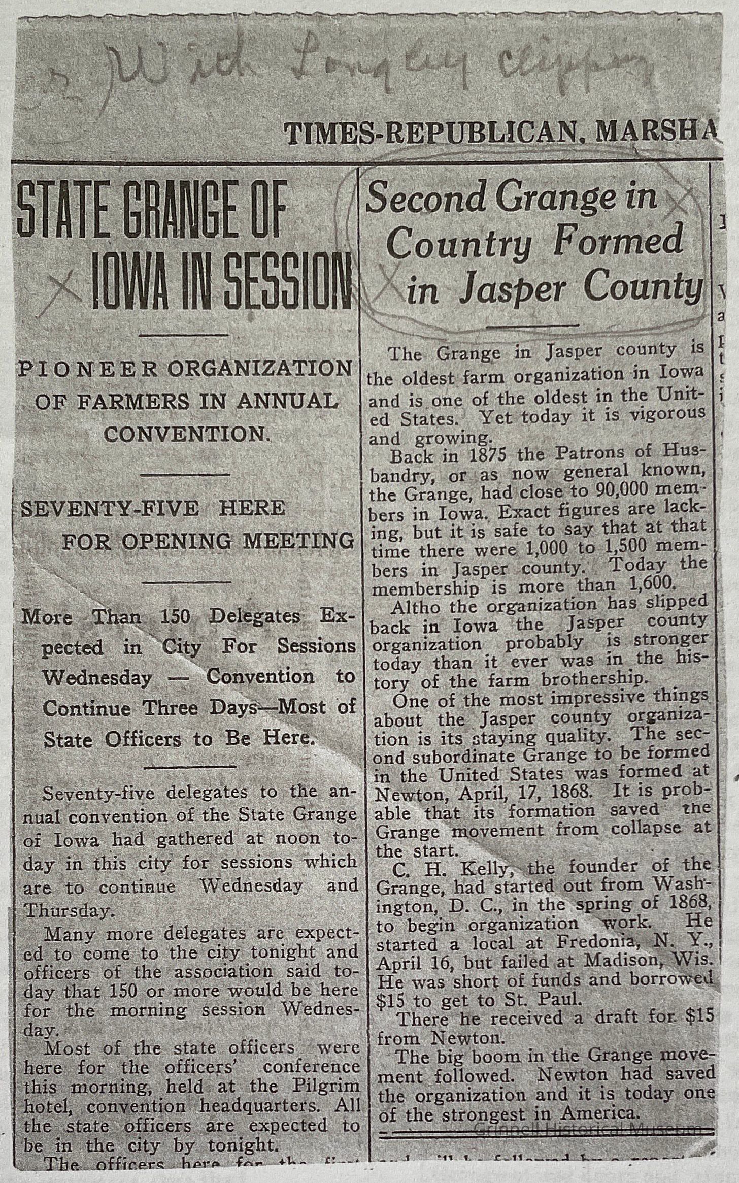 Grange 1874, 1920s, 1930s, 1950s