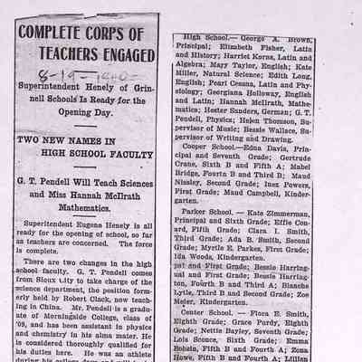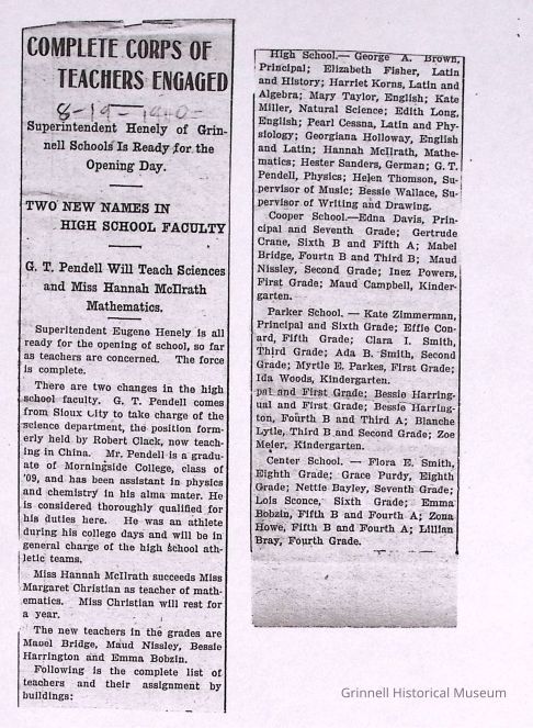 Newspaper clippings, documents from the Grinnell Public Schools. The collection consists of four boxes.
