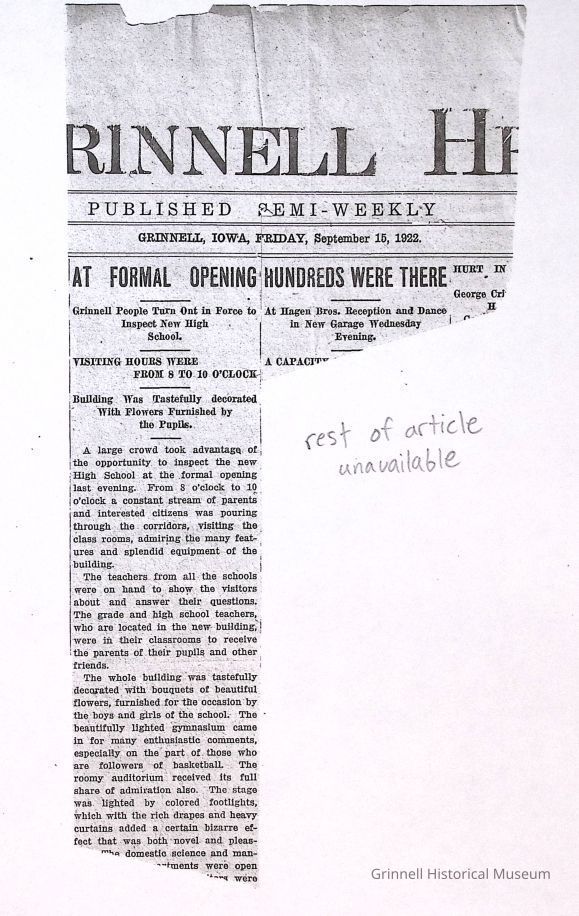 Newspaper clippings, documents from the Grinnell Public Schools. The collection consists of four boxes.