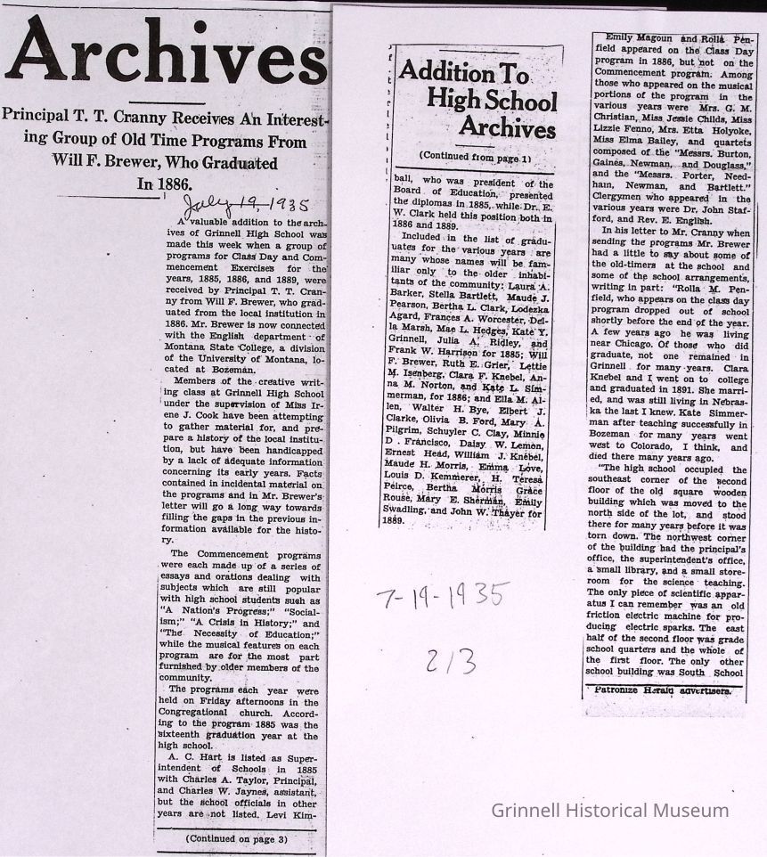 Newspaper clippings, documents from the Grinnell Public Schools. The collection consists of four boxes.