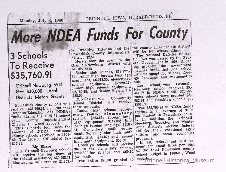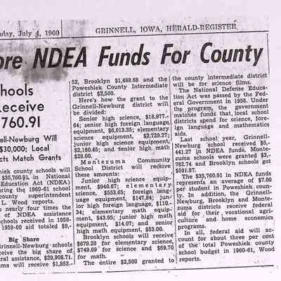 Newspaper clippings, documents from the Grinnell Public Schools. The collection consists of four boxes.