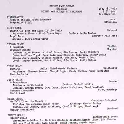 Box #4: Newspaper clippings, brochures, and class programs. Also contains information on rural school reorganization, "The Young Citizen" magazine, adult education, school buildings, Cranny Field, State of Iowa Eighth Grade Examination, alumni newsletter, preschool study, and special education programing.