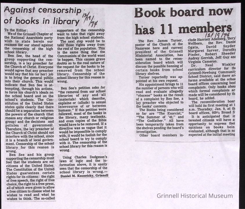 Newspaper clippings, documents from the Grinnell Public Schools. The collection consists of four boxes.