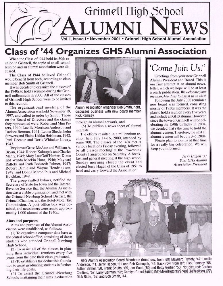 Grinnell Public Schools -- Grinnell High School Alumni News newsletterEntry/Object ID