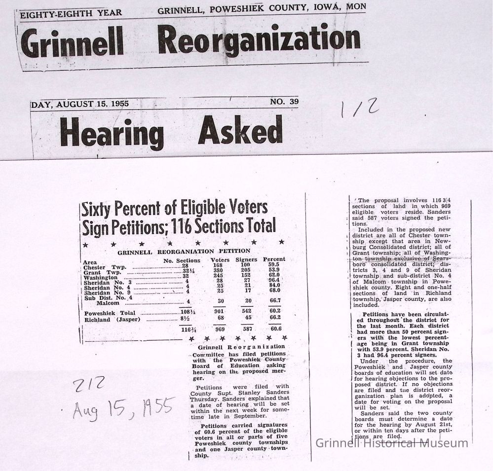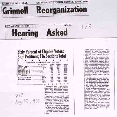 Newspaper clippings, documents from the Grinnell Public Schools. The collection consists of four boxes.