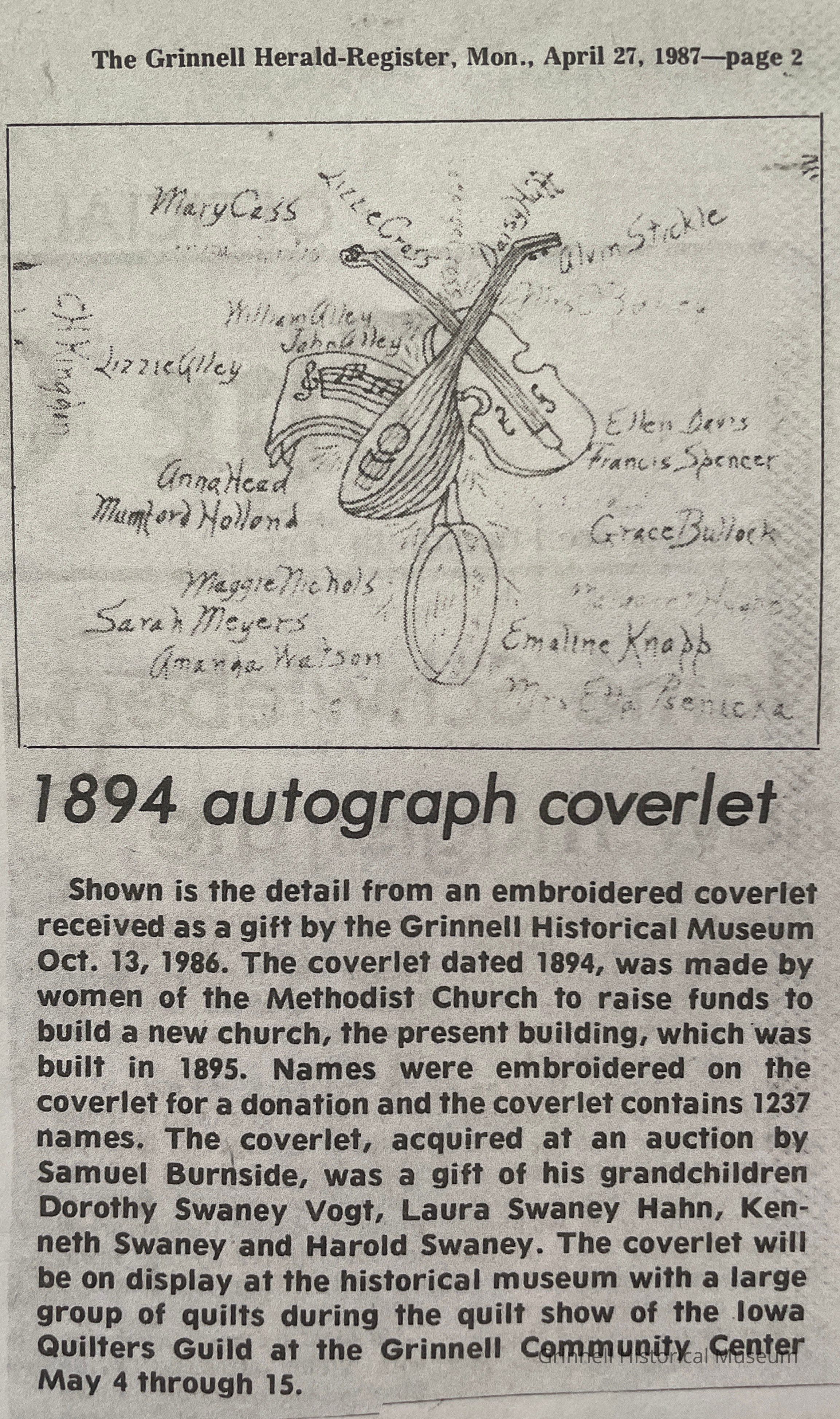 Methodist Church Autograph Coverlet