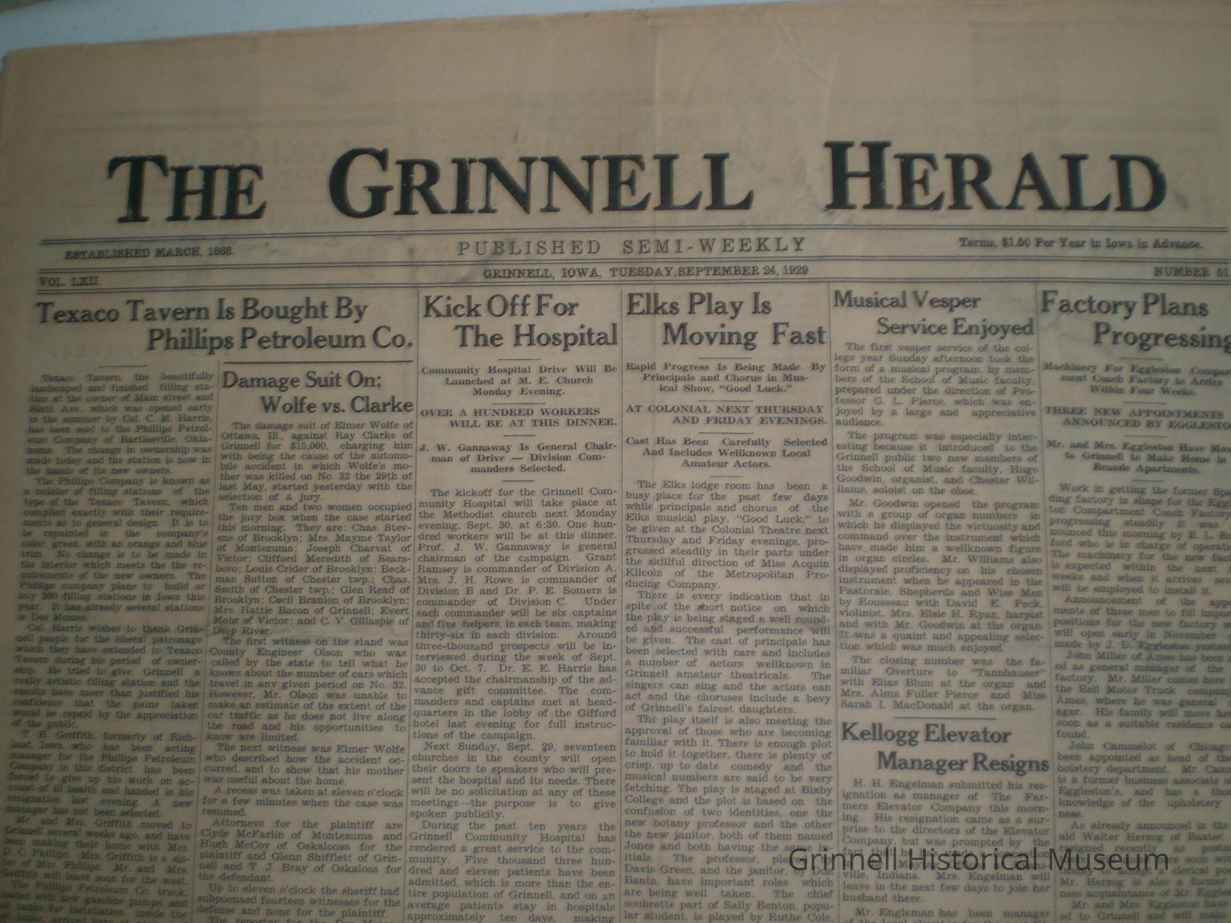 Grinnell Herald 9/24/1929
