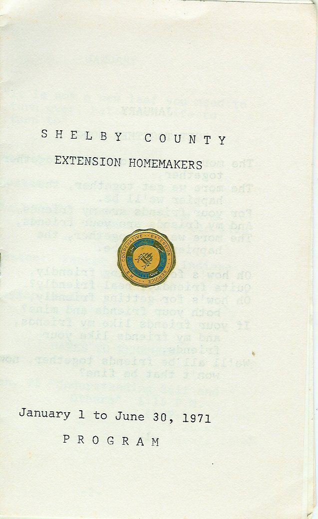 Shelby County Extension Homemakers Program Booklet, Jan 1 - June 30, 1971Collection