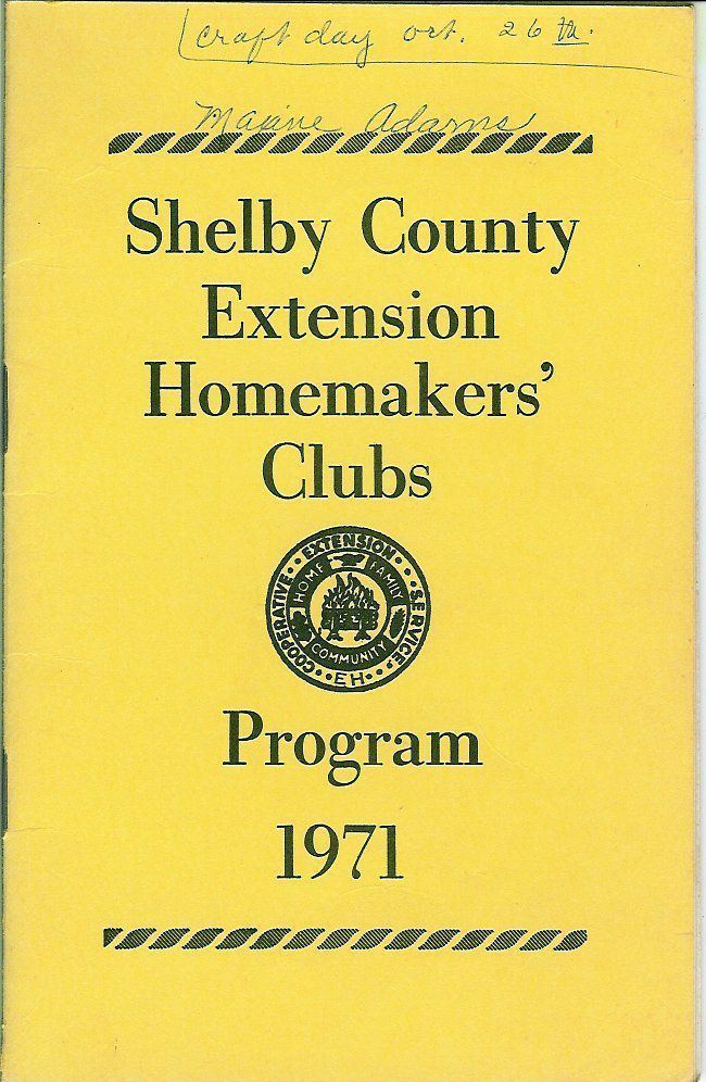 1971 Extension Homemakers Clubs of Shelby County.Scope and Content