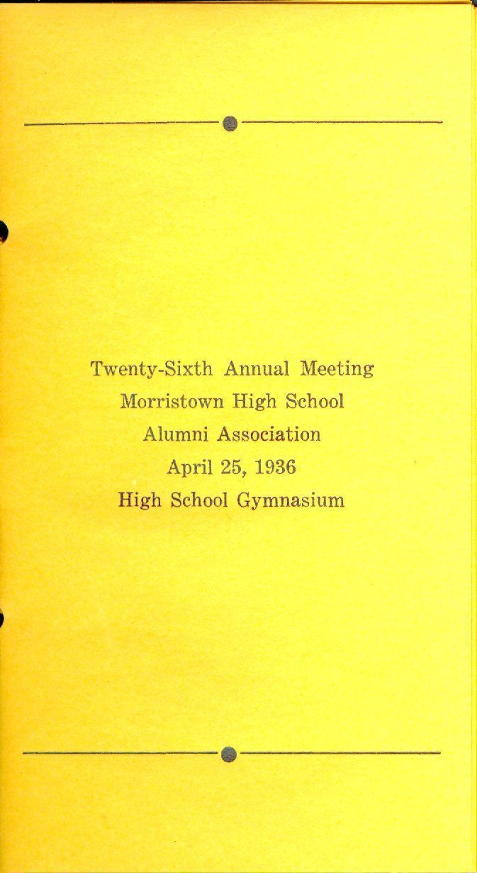 26th Annual Meeting Morristown High School Alumni Association/April 25, 1936/High School GymnasiumDescription